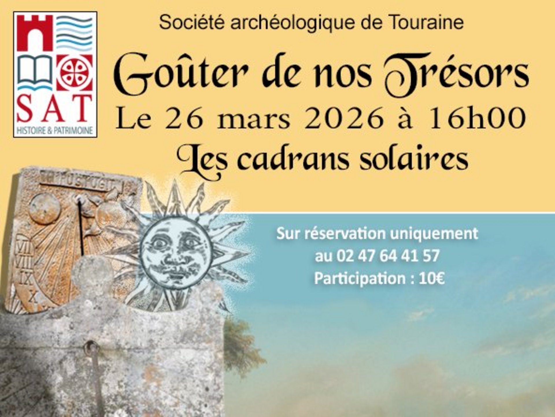 Le Goûter de nos Trésors est l'occasion de sortir des pièces remarquables de nos collections. Nous présenterons à cette occasion des cadrans solaires. Nous verrons comment les lire et admirerons ensemble les spécificités de certains d'entre eux.